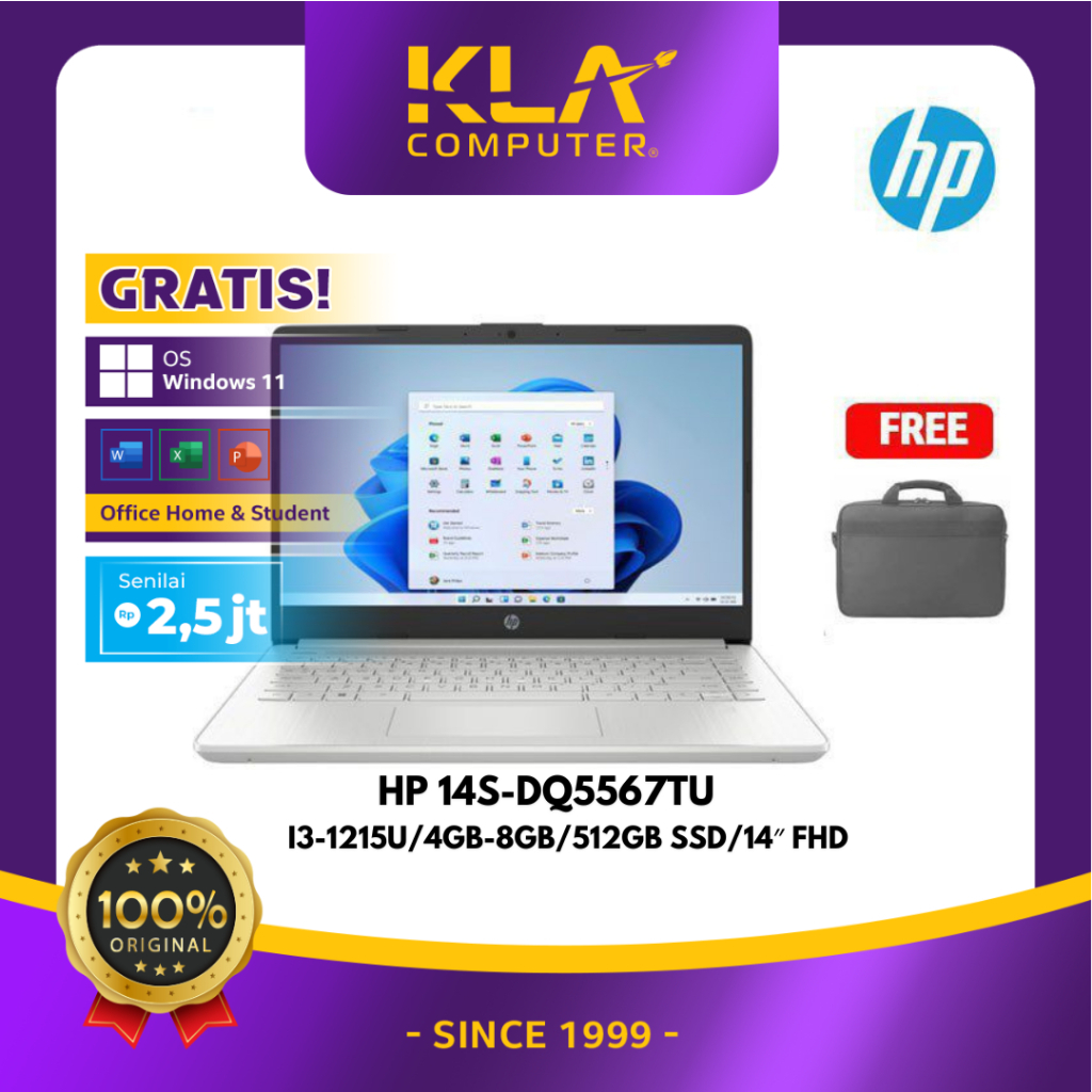 HP 14S-DQ5567TU /CORE I3-1215U/4GB-8GB/512GB SSD/14″ FHD/WIN 11 HOME+OHS 2021/SILVER