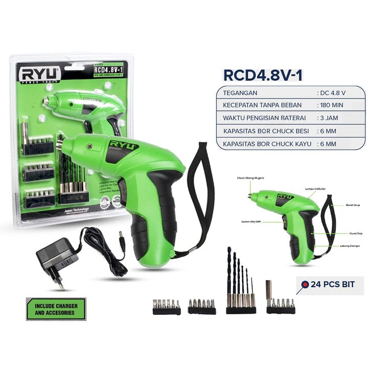 Bor Cordless Baterai RYU RCD 4.8V-1 Cordless Brushless Mesin Bor Obeng Batrai Cordless Screwdriver