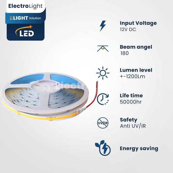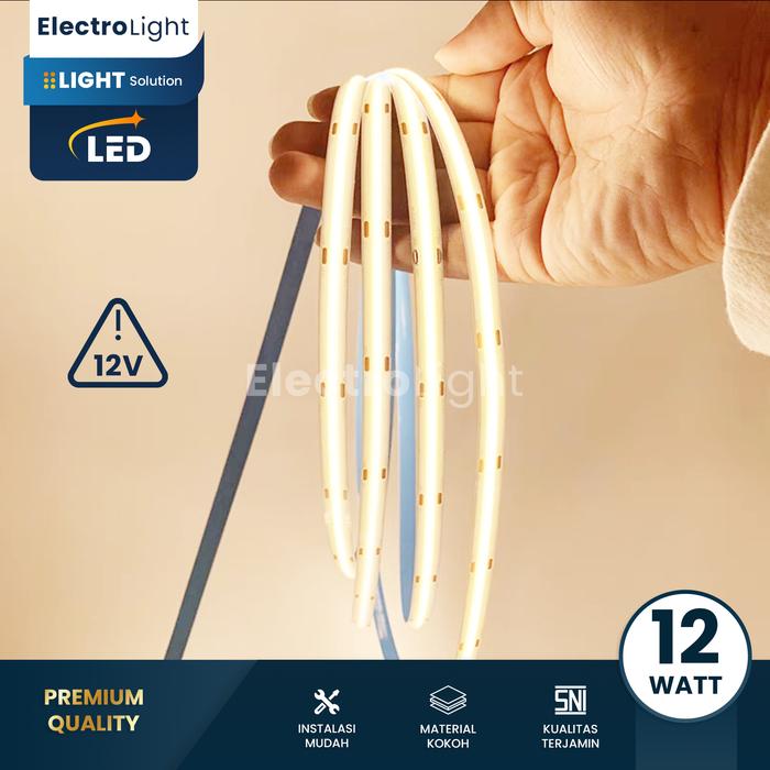 TERLARIS LAMPU LED STRIP COB 12VOLT DOTLESS 5METER INDOOR DEKORASI FLEXIBEL ADAPTOR