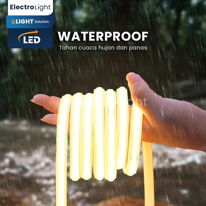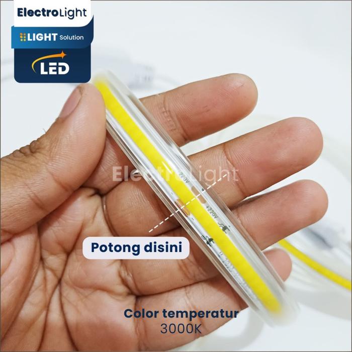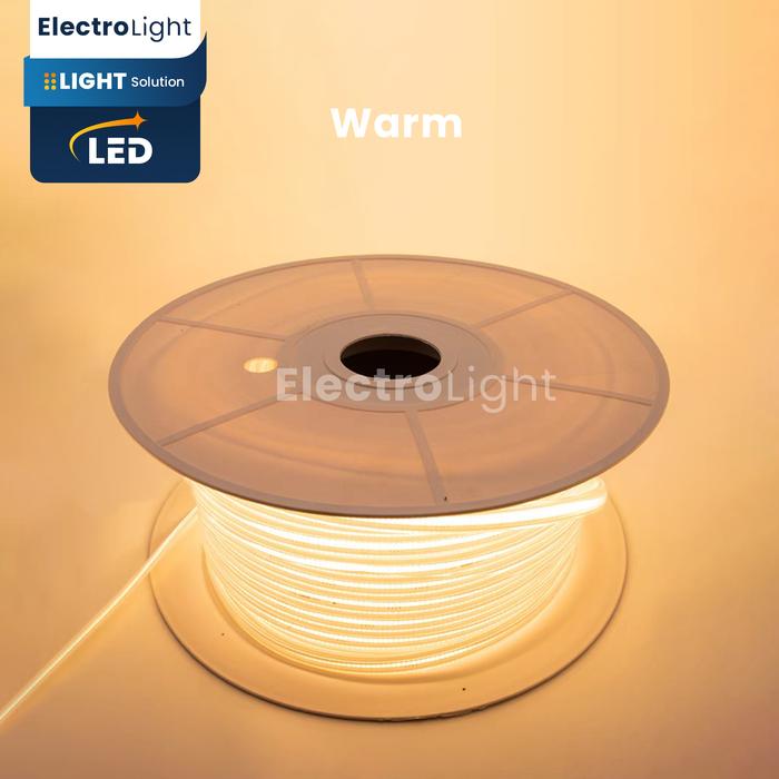 TERLARIS LAMPU STRIP LED COB 220V 1 ROLL 50 METER DOTLESS SELANG TEBAL WATERPROOF OUTDOOR PREMIUM WARM