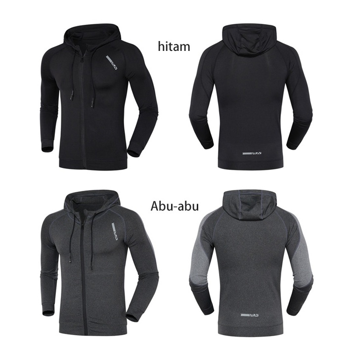 KAMB Jaket Olahraga Gym Dry Fit Pria Hoodie Lengan Panjang Black termurah