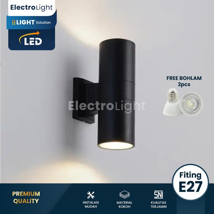 TERLARIS LAMPU DINDING TAMAN 2ARAH OUTDOOR WATERPROOF E27 ALUMINIUM HIAS TEMBOK WARM(3000K)