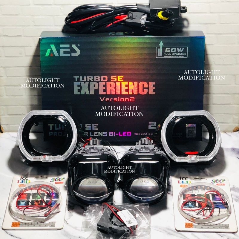 PAKET LENGKAP PAKET HEMAT BILED PROJECTOR AES TURBO SE EXPERIENCE VERSION2 2,5 INCH LOW 60 WATT HIGH 70 WATT