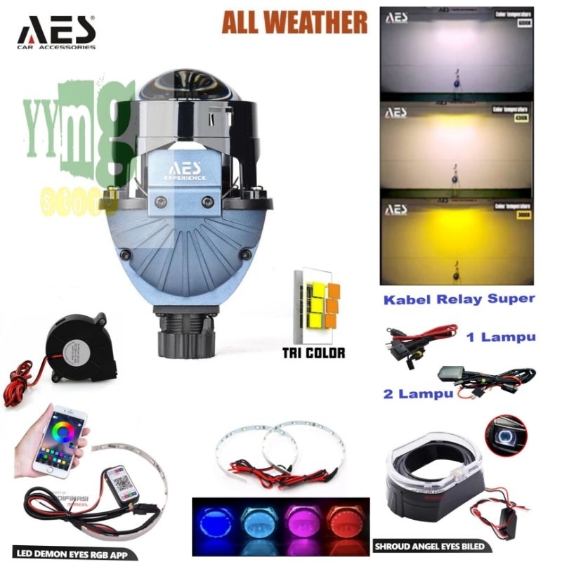 Paket Komplit Biled Aes Turbo Experience V2 2.5 inch 60 Watt Motor Mobil Universal Harga Satuan