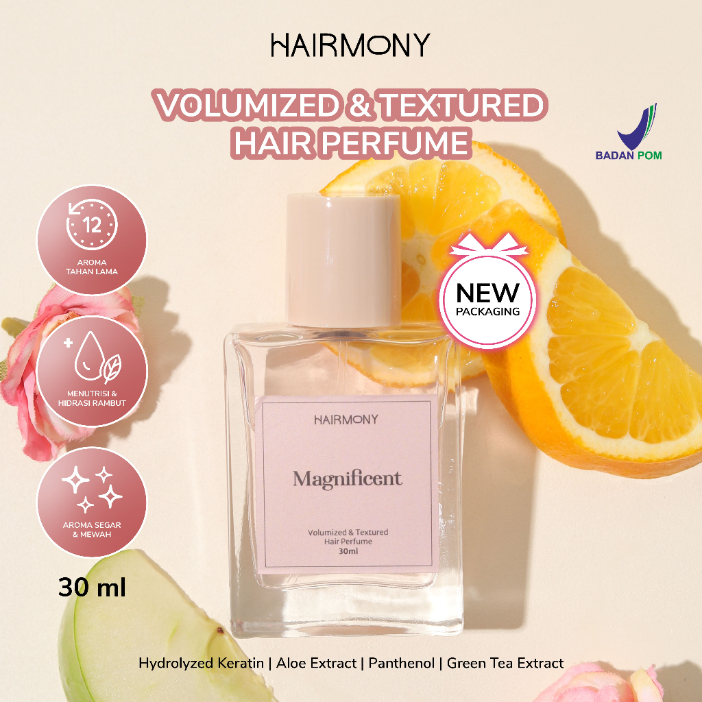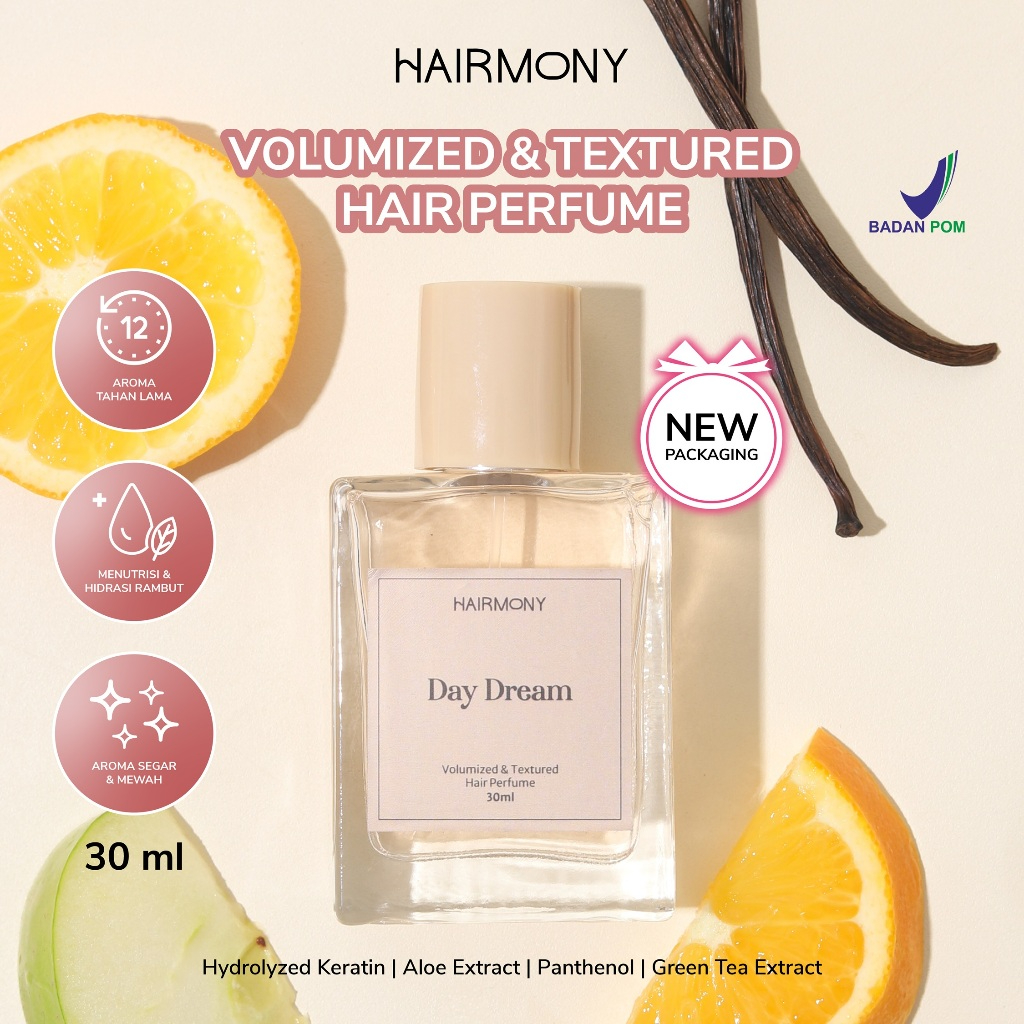 Hairmony Volumize & Textured Hair Perfume - mengandung Panthenol, green tea, aloe vera. Rambut wangi badai segar 12 jam