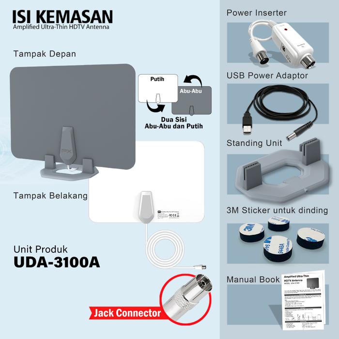 TERLARIS ANTENA TV DIGITAL INDOOR ANALOG DVBT2 UHF BOOSTER GARANSI 18 BULAN PX UDA3100A