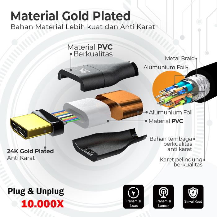 TERLARIS KABEL HDMI 21 8K UHD HDR EARC HIGH SPEED QUALITY PANJANG 2 METER PX HDMI2X