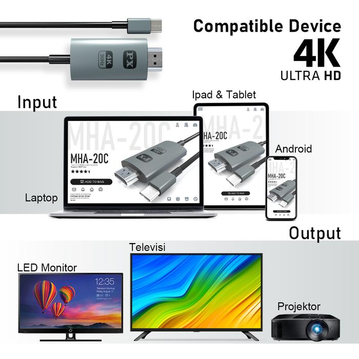 TERLARIS KABEL MHL USB TYPE C 31 TO HDMI TV CONVERTER HP KE TV 4K PX MHA20C 2 METER