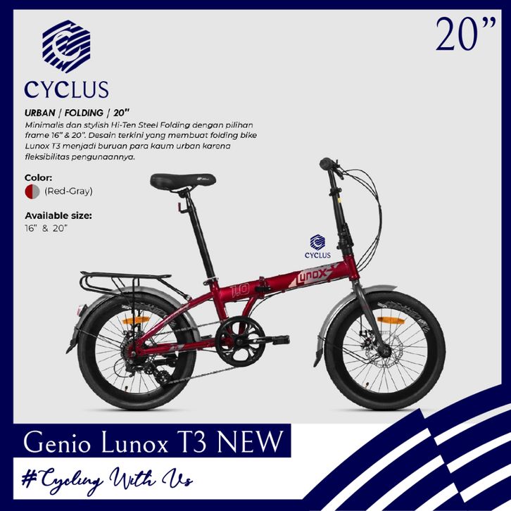 Sepeda Folding Lipat Anak Dewasa Genio Lunox 7 Speed 20 Inch TERBARU
