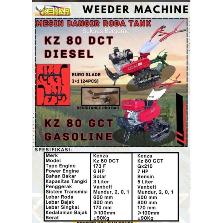Mesin Dangir / Weeder Machine Roda Tank Kenza KZ 80 DCT (Solar) KZ 80 GCT (Bensin)