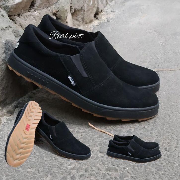 TERMURAH Sepatu Pria Casual Slip On Hitam Polos Slop Kasual Tanpa Tali Full Black Gum Buat Gaya dan Kerja obemnc