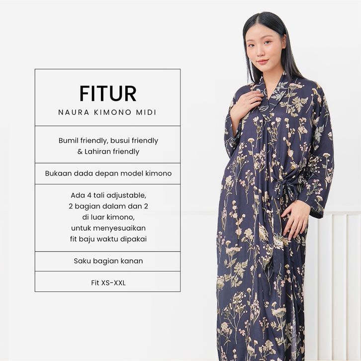 Gaun Piyama DYD LABEL Dress Kimono Naura Midi Daster Busui dan Lahiran Friendly Bahan Rayon Size Jumbo