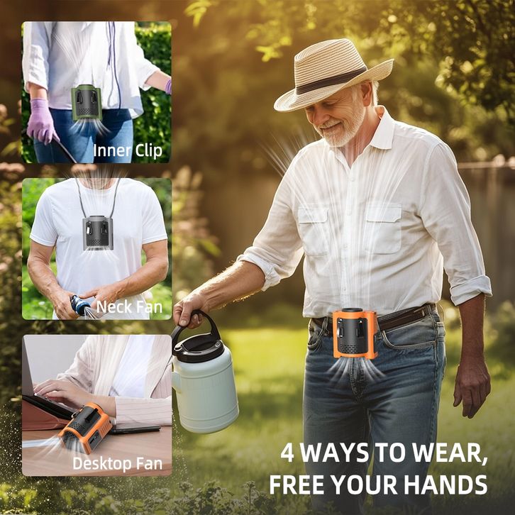Orashare WF10 Kipas Pinggang Portabel 10000mAh Kipas Angin Kencang 5 Kecepatan Dapat Diisi Ulang Dengan Powerbank Lampu
