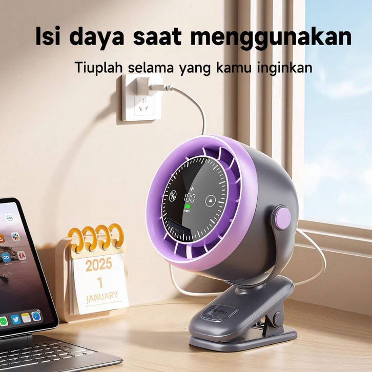 TREND KIPAS JEPIT Jovitech FN36 Kipas Angin Strong Wind 100 Gear Jepit Meja Usb Mini Fan touch control LED Display Rech