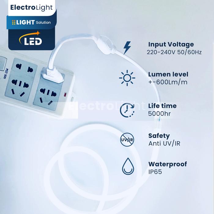 TERLARIS LAMPU STRIP PAKET NEON FLEX LED TIDAK BINTIK 220V LAMPU STRIP LIGHT SELANG FLEXIBEL WATERPROOF SOCKET WARM 3 M