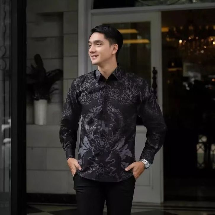 Kemeja Batik Pria Hitam Lengan Panjang Katun Premium Kemeja Batik Kemeja Batik Pria Kemeja Batik Lengan Panjang Kemeja B