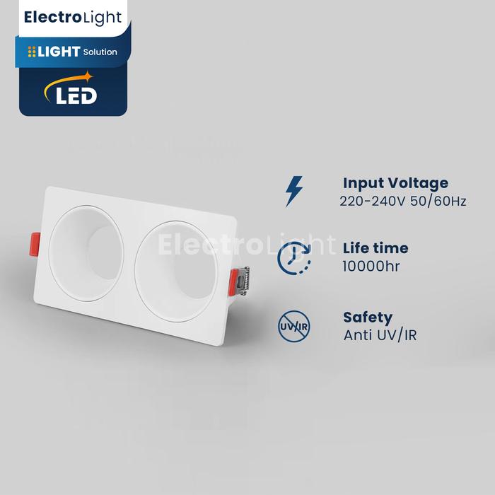 TERLARIS LAMPU DOWNLIGHT INBOW KOTAK HALOSPOT 2LAMPU 3LAMPU HOUSING MR16 LED 3LAMPU HITAM WARM (3000K)
