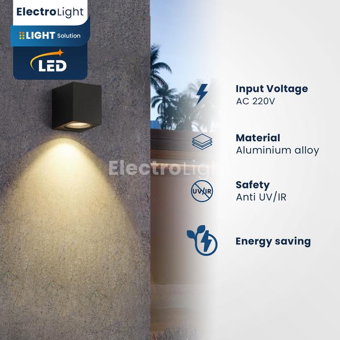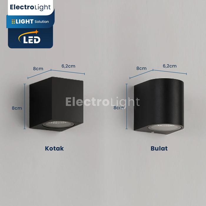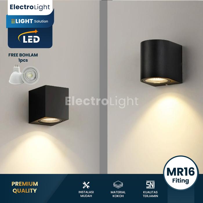 TERLARIS LAMPU DINDING SOROT KOTAK BULAT 1ARAH ALUMINIUM WATERPROOF FITING MR16 KOTAK WARM(3000K)