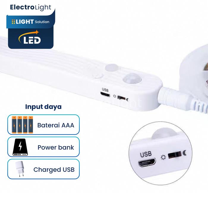 TERLARIS LAMPU STRIP LED HIAS TEMPEL USB BATERAI SENSOR GERAK DAPUR LEMARI TIMER 1 METER 2 METER 1 METER