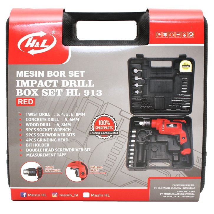 Mesin Bor Listrik Set H&L 13mm Impact Drill Box Set Komplit HnL HL913