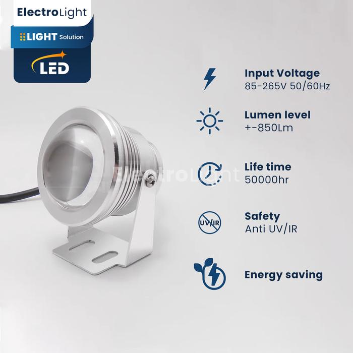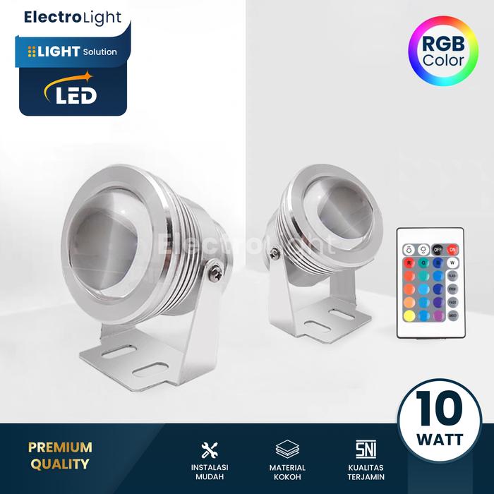 TERLARIS LAMPU KOLAM SOROT RGB 10WATT 12V DC REMOTE WATERPROOF STAINLESS
