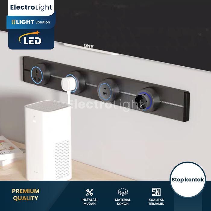 TERLARIS STOP KONTAK POWER OUTLET KEPALA SOCKET LISTRIK 220V MODERN MINIMALIS USB TIPE C COLOKAN TIPE A