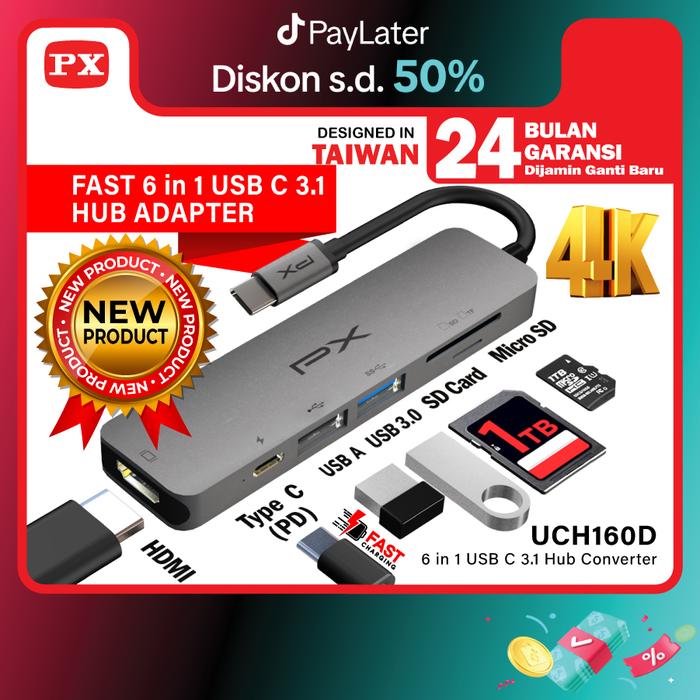 TERLARIS USB HUB CONVERTER TYPE C 31 LAPTOP HDMI 6 IN 1 PX UCH160D