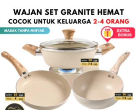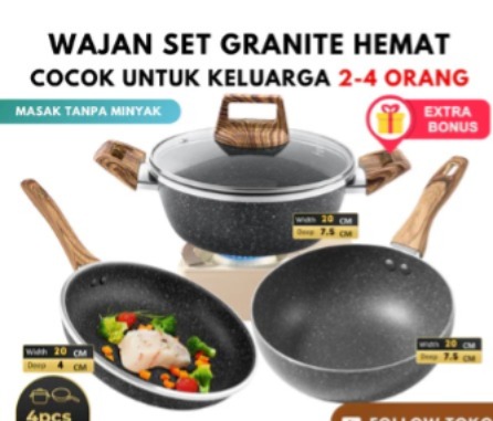 Panci - Panci set - alat masak - Wajan Panci Set 20 4pcs Cm Premium Anti Lengket Multifungsi Bertutup Kaca Serbaguna
