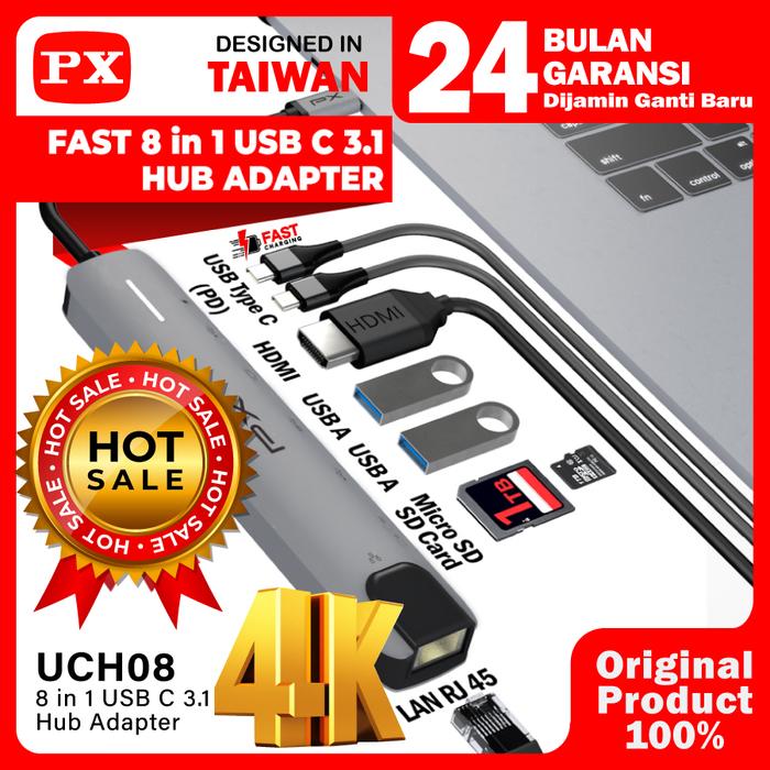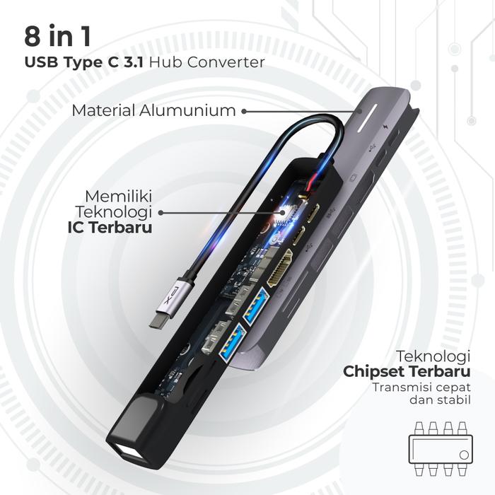 TERLARIS HUB CONVERTER USB TYPE C 31 TO USB TYPE C 4K HDMI 8 IN 1 PX UCH08