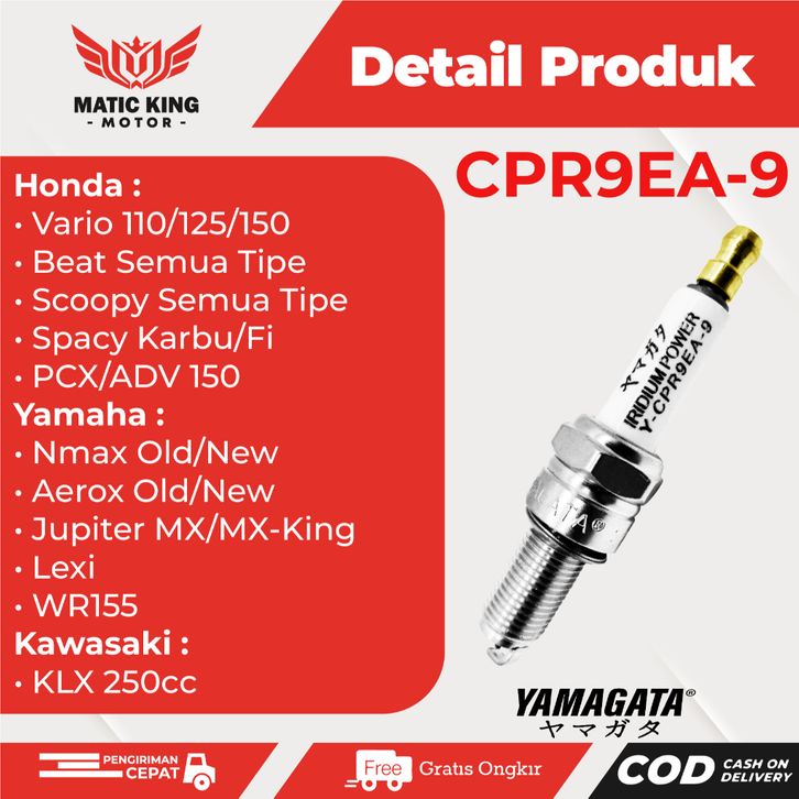 Yamagata Busi Spark Racing Honda Beat Vario Scoopy PCX Genio Deluxe Verza CB CBR ADV Karbu Fi ESP 110/125/150 CPR9EA