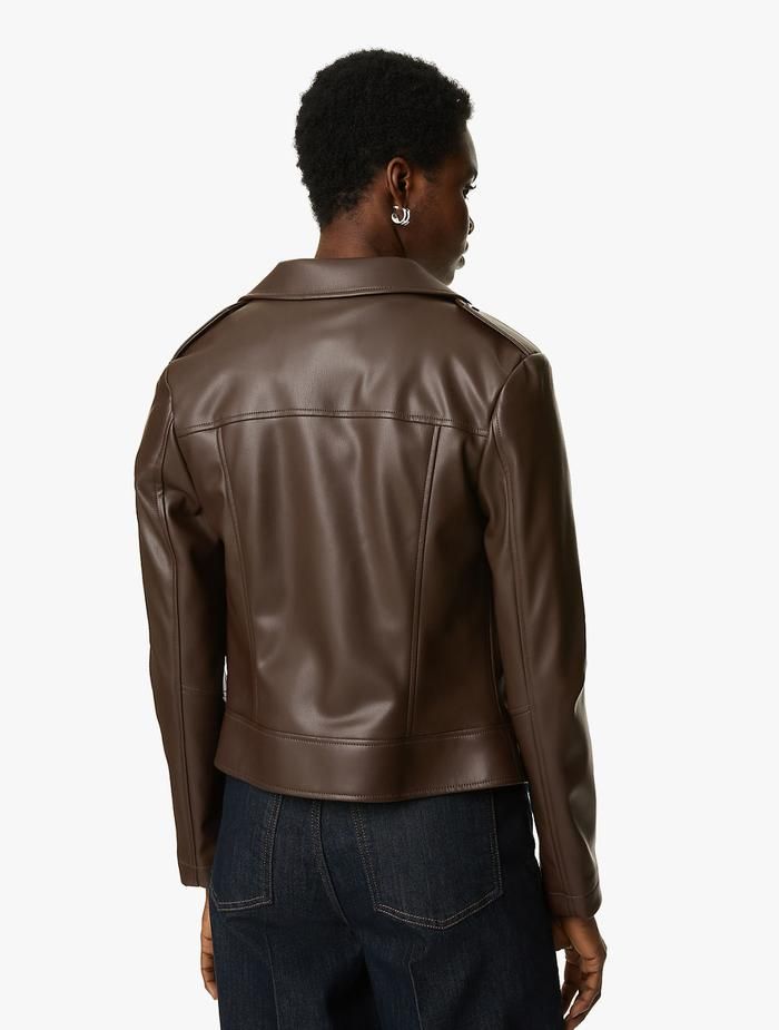 M&S - Jaket Wanita - Faux Leather Biker Jacket - CHOCOLATE