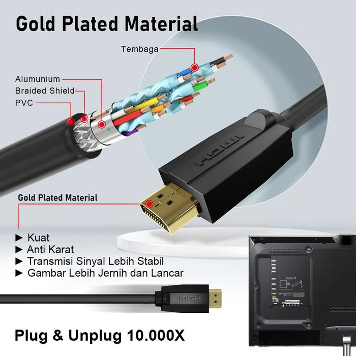 TERLARIS KABEL HDMI 4K ULTRA HD HDR ARC HIGH SPEED QUALITY PANJANG 10 METER PX HDMI10
