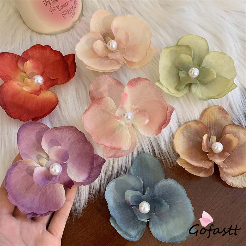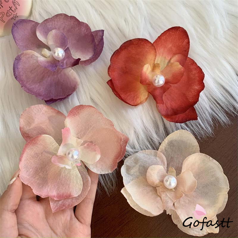 Jepitan Rambut Mutiara Anggrek Kupu-kupu Gradien Hiasan Kepala Bunga Peri Super Jepitan Poni Wanita Segar G