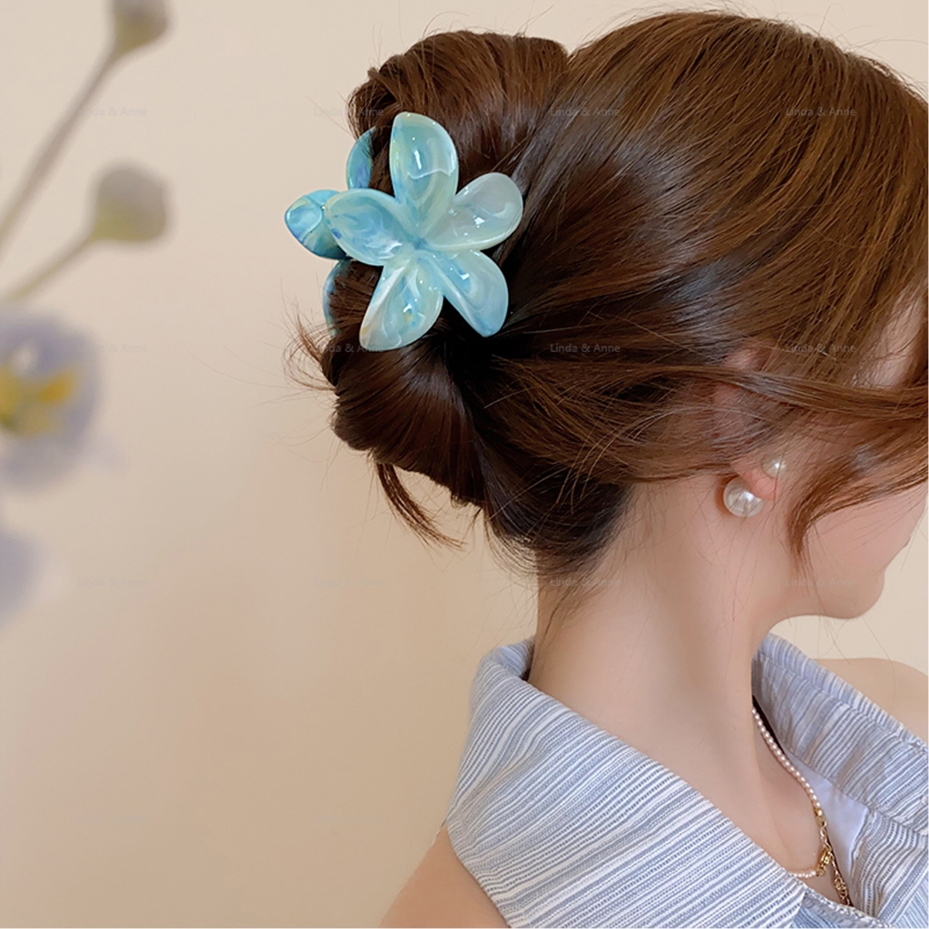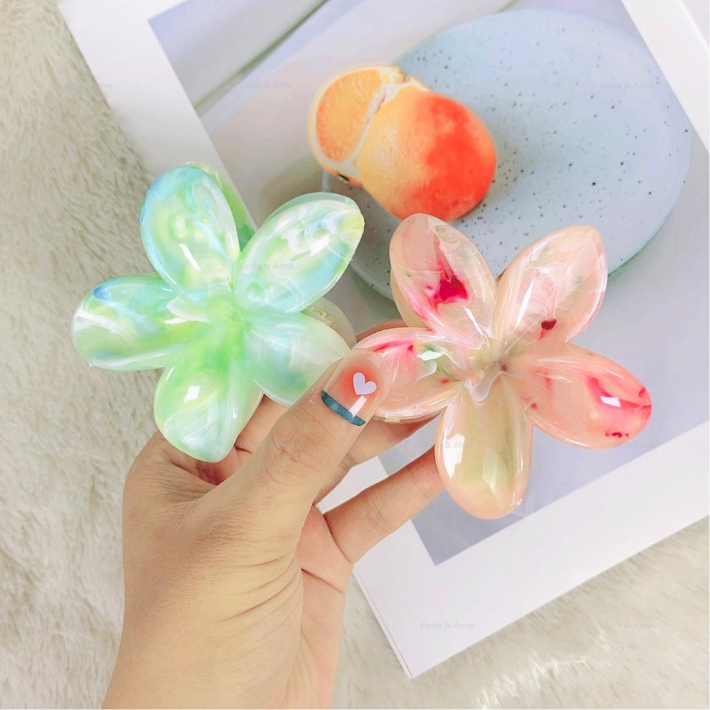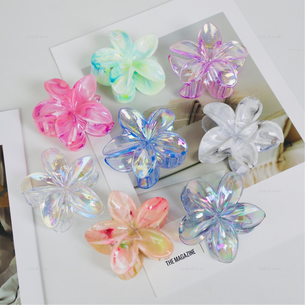 L&A - Jepit Rambut Bunga Plumeria Warna Marble Hairclip Jedai Rambut Swirl