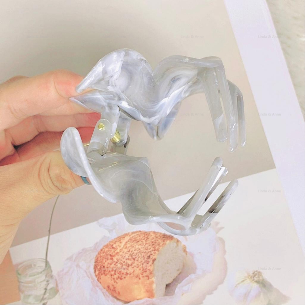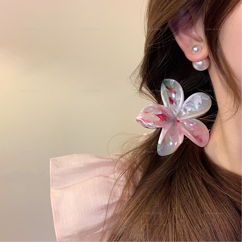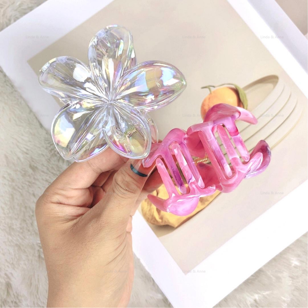 L&A - Jepit Rambut Bunga Plumeria Warna Marble Hairclip Jedai Rambut Swirl