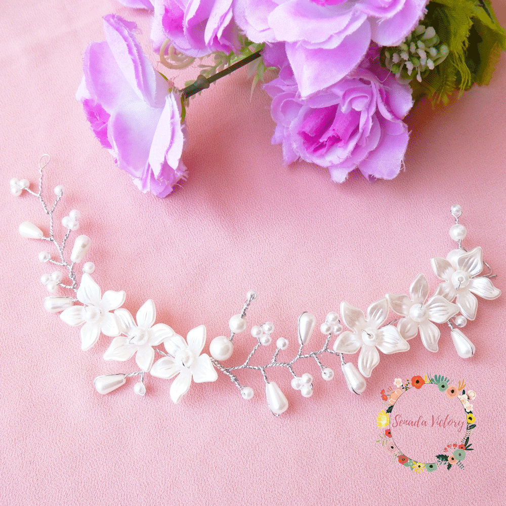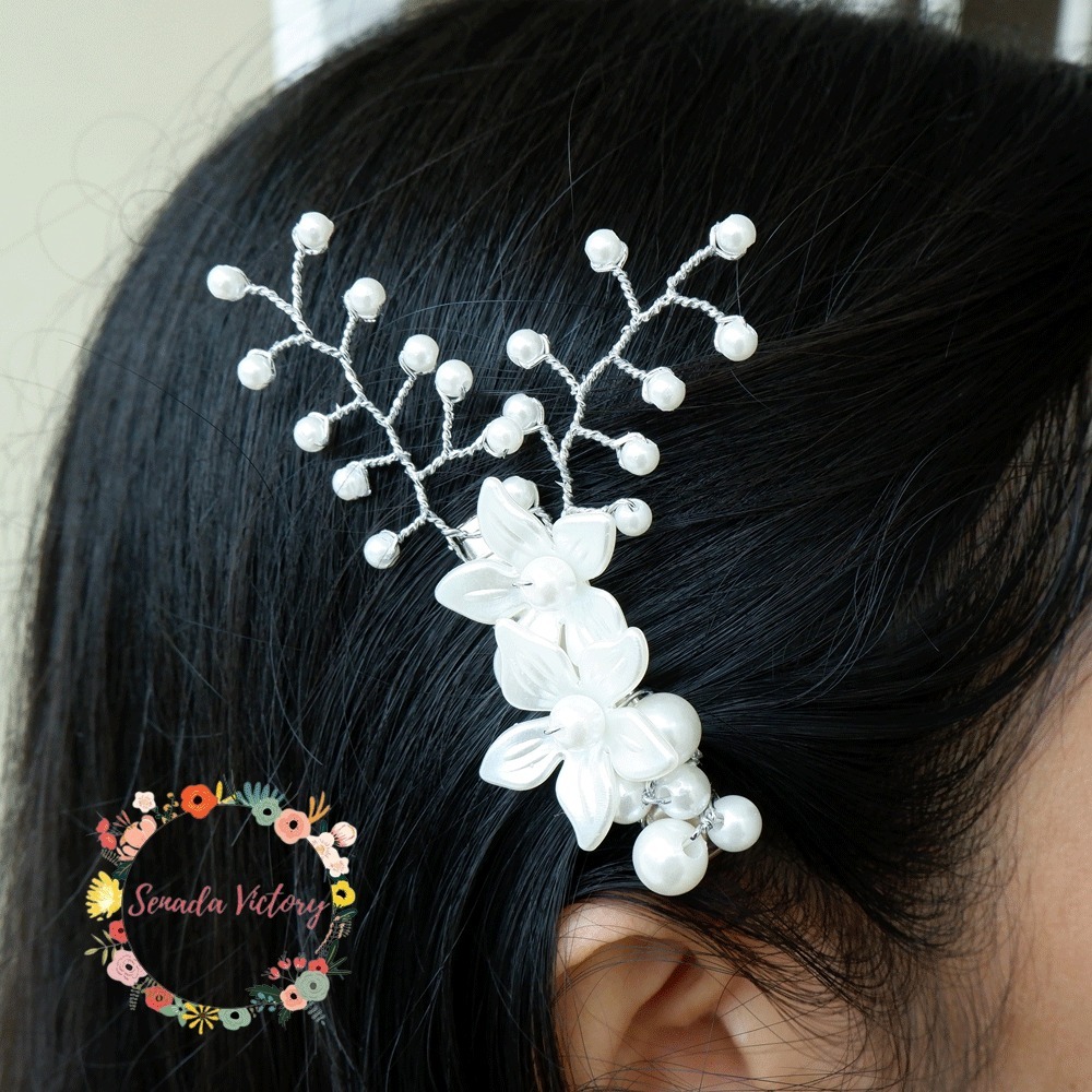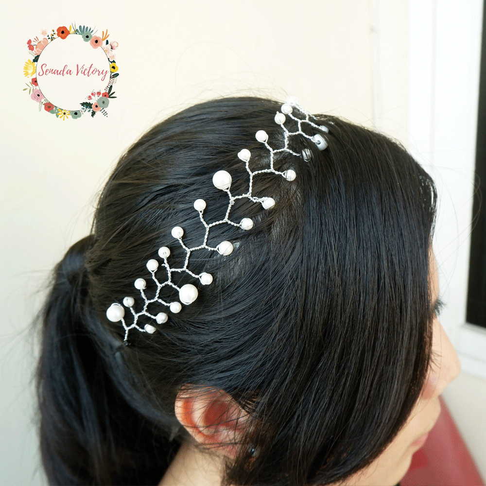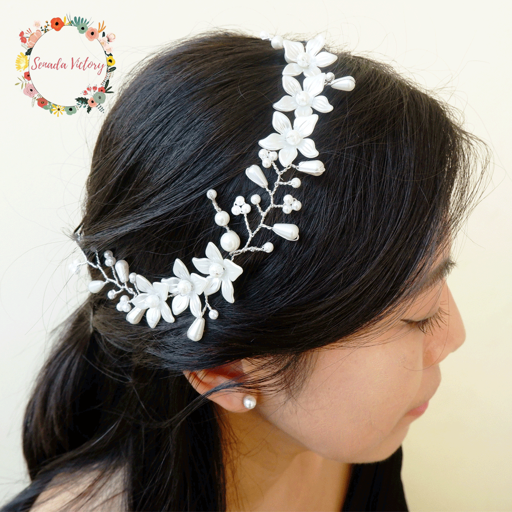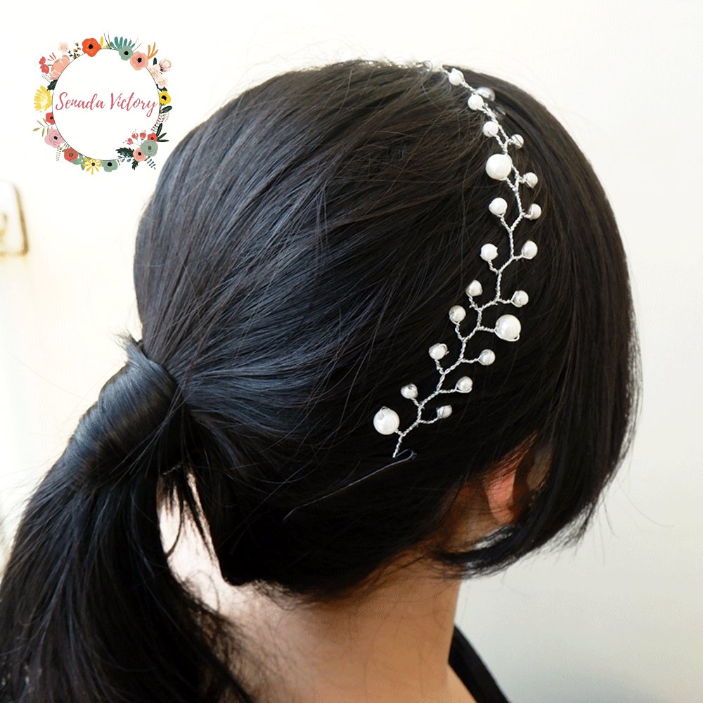 Senada Victory Bando Headpiece Kawat Lentur Hiasan Kepala Mutiara Mahkota Bunga BMK01