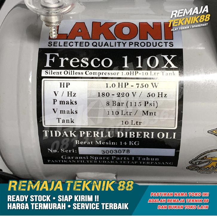 KOMPRESOR ANGIN / 1HP LAKONI FRESCO 110X / KOMPRESOR OILESS SILENT / TANPA OLI