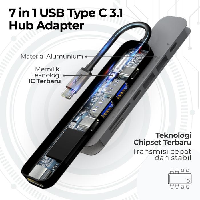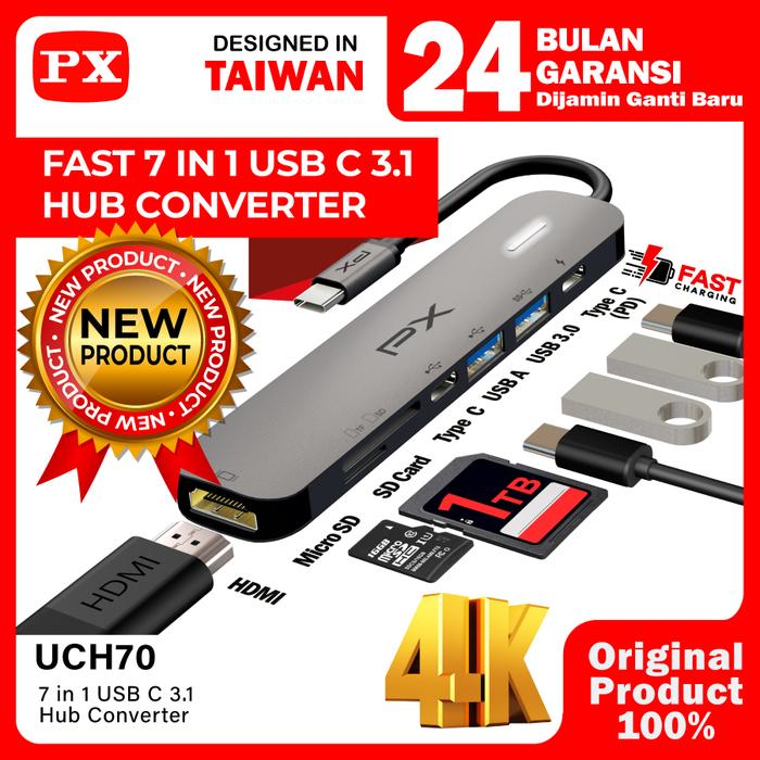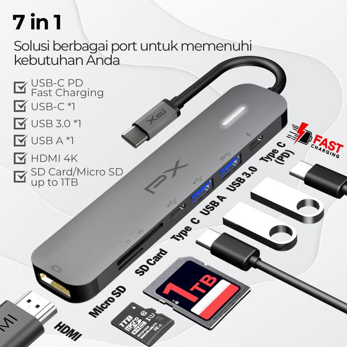 TERLARIS USB HUB TYPE C 31 CONVERTER TO HDMI USB MICRO SD CARD 7 IN 1 PX UCH70