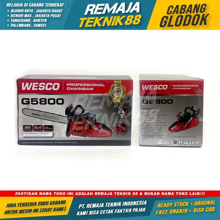 MESIN POTONG KAYU BENSIN 2 TAK / CHAINSAW WESCO G 5800 BAR 22" + RANTAI