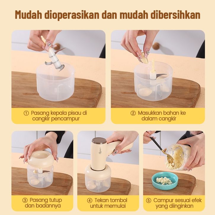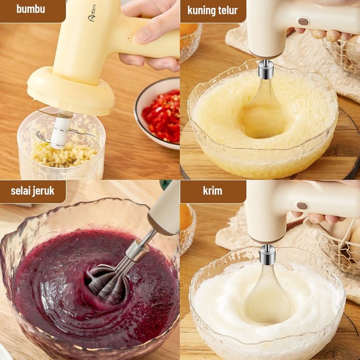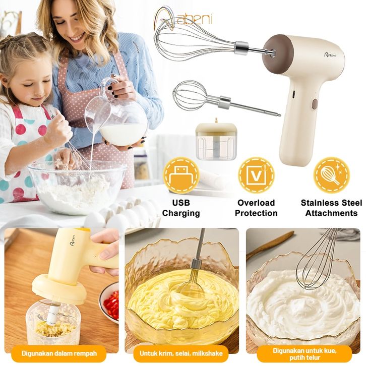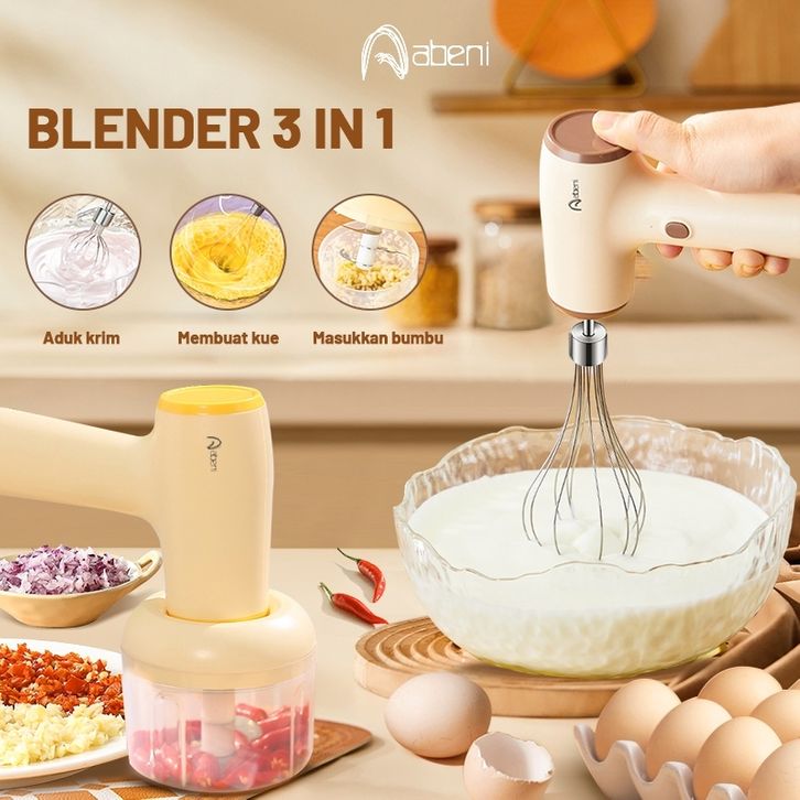 Abeni Blender Mixer Mini 3IN1 USB Portable Hand Mixer Elektrik Mikser Pengaduk Adonan Telur Chopper Mini Food Processor