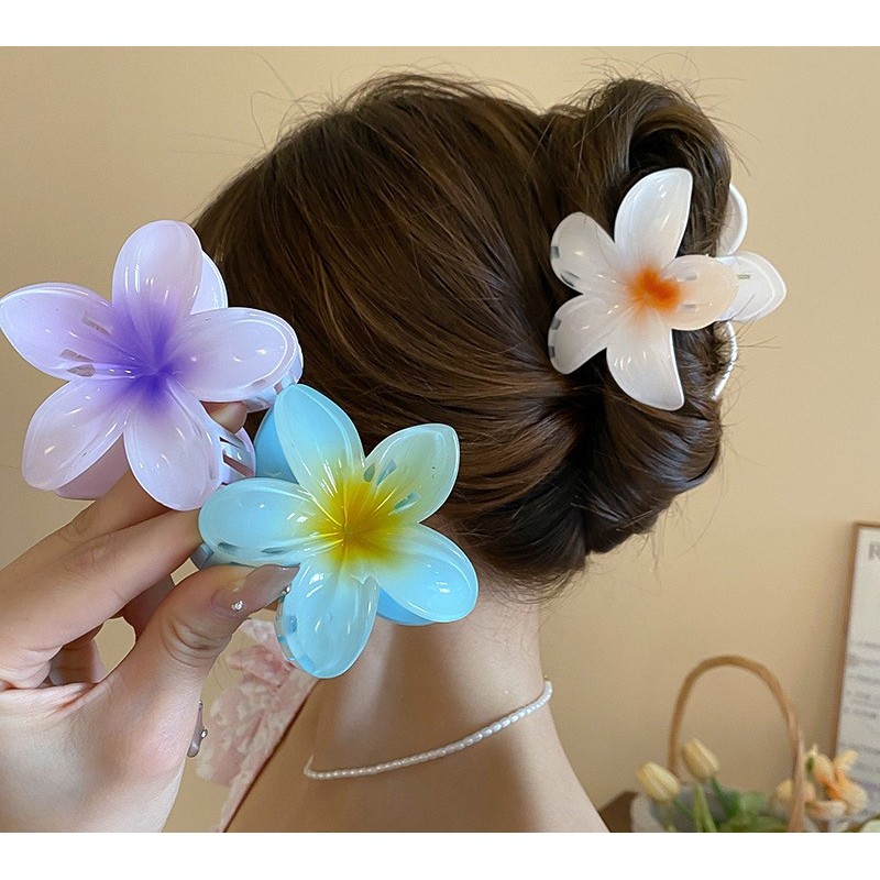 Toko1234. Jepit Rambut Wanita Motif Bunga Kamboja 8 CM Gaya Liburan di Tepi Pantai Aksesori Rambut Akrilik