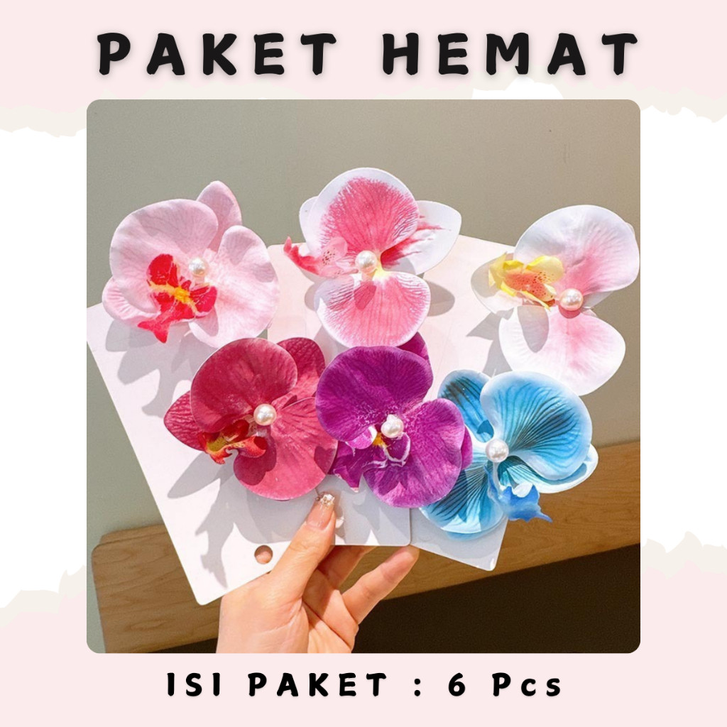 [ PAKET HEMAT ] JP1989 Jepit Rambut isi 6pcs Fashion Wanita kepala Bunga Anggrek Cantik Flowers Hair Clip Latex