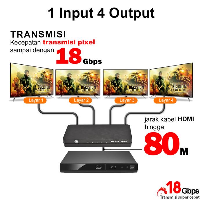 TERLARIS HDMI SPLITTER 1 INPUT 4 OUTPUT FULL HD 3D 4K 4 PORT PX HD2141 BLACK