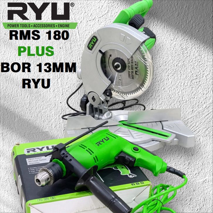Mesin Gergaji Potong Kayu Figura RMS 180 Mitter Saw Miter Mitre Saw PLUS Mesin Bor Tangan Listrik