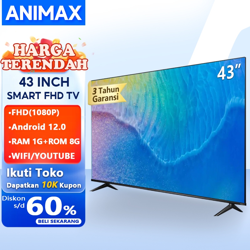 Animax Sakura Smart TV Digital 43 inch TV LED Android 11.0 FHD Televisi LED TV 32 inch TV 43 inch Smart TV Android Youtube-WIFI-Browser-HD (TCLG-S43D)