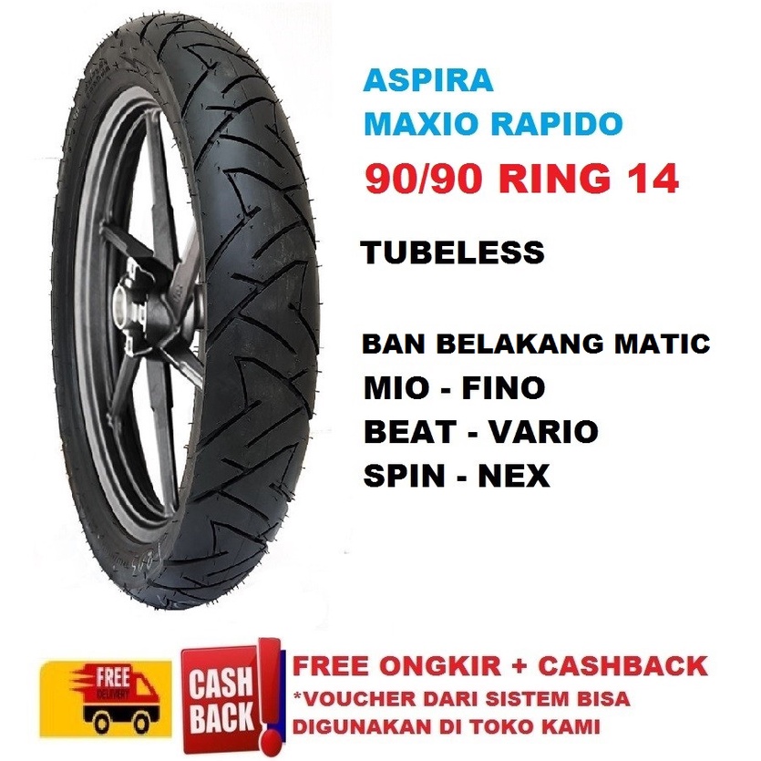 Ban Belakang TUBELESS Motor Matic Aspira MAXIO Rapido 90/90 ring 14 vario beat mio