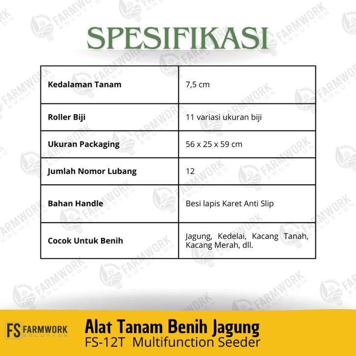 Alat Tanam Benih Jagung Kacang Manual Dorong FS-S12T Jarak 5-12cm | Hand Push Seeder Farmwork Solution