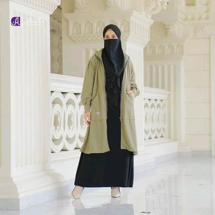 FATHIYAH OUTER MUSLIMAH ORI ALIETHA JACKET WANITA TERBARU VIRAL KEKINIAN Jaket Panjang - MATCHA