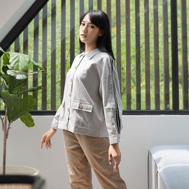 Cotton Inch - Ahra Jaket Outer Crop Canvas Wanita - ABU