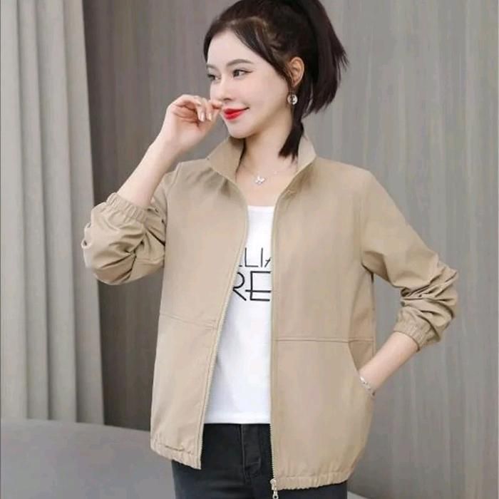 Jaket Cewe Model Terbaru Keren Kekinian Style Korea Bahan Kain Katun Driil Wanita Casual Slim Fit - HITAM
